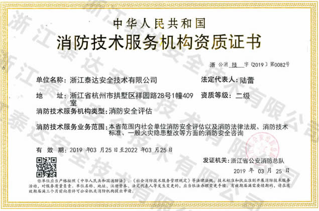 社會單位消防安全評估;消防法律法規(guī)、消防技術(shù)標準、一般火災(zāi)隱患整改等方面的消防安全咨詢。